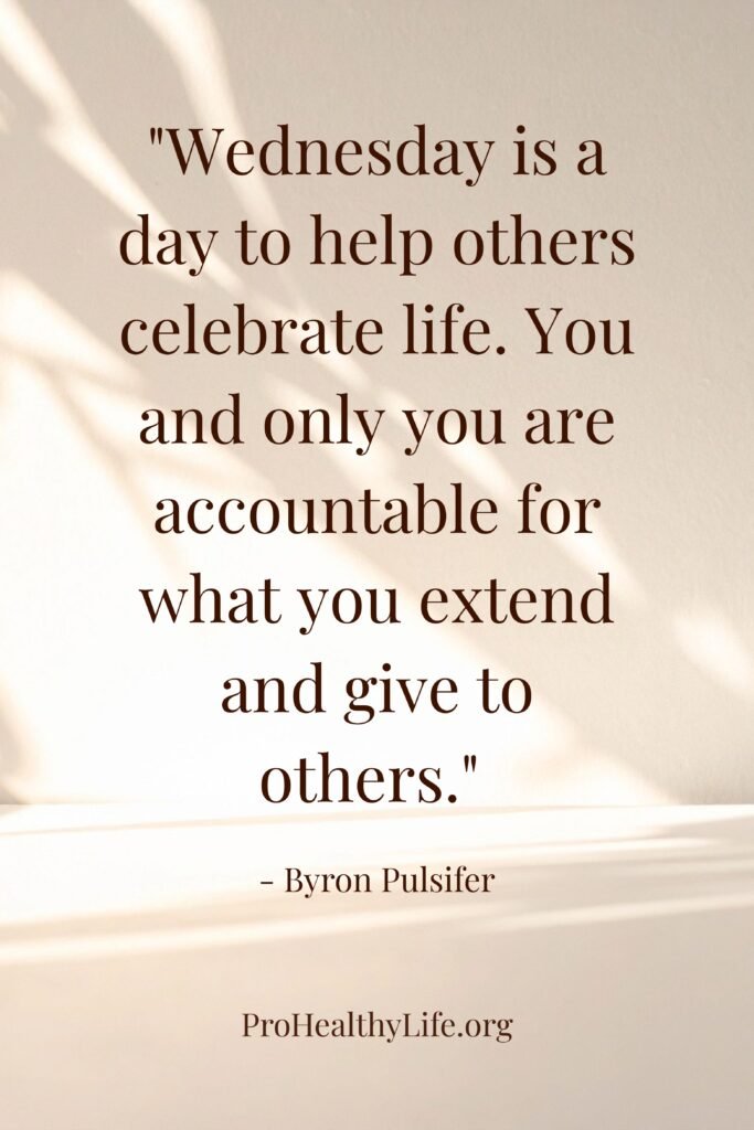 “Wednesday is a day to help others celebrate life. You and only you are accountable for what you extend and give to others.” – Byron Pulsifer